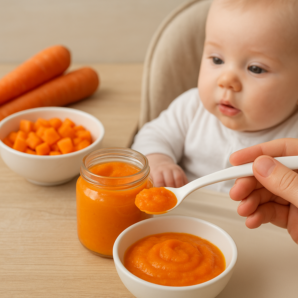 - Gotowane kawałki marchewki blenduje się z niewielką ilością oliwy i orzechów nerkowca.