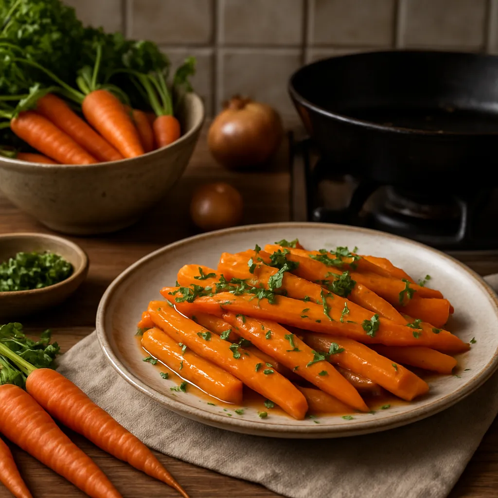 • Przed obróbką termiczną możesz chwilę podgotować marchew w wodzie z odrobiną soli i odcedzić – pozwoli to złamać włókna i przyspieszy dalsze duszenie.