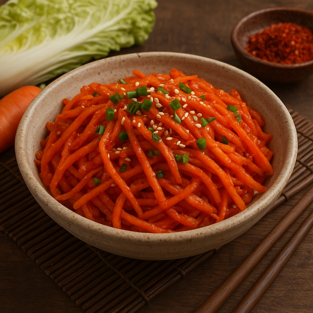Choć tradycyjne kimchi kojarzone jest głównie z fermentowaną kapustą pekińską, historia kulinariów Korei pokazuje, że na stołach od dawna pojawiały się różnorodne warzywa. Marchew zawitała do Korei dzięki jedwabnym szlakom handlowym, a później naturalnie zadomowiła się w lokalnych ogródkach. Jej słodkawy, lekko orzechowy posmak znakomicie uzupełnia charakterystyczną ostrość przypraw, takich jak koreańska pasta z papryczek gochujang czy suszona papryka gochugaru.